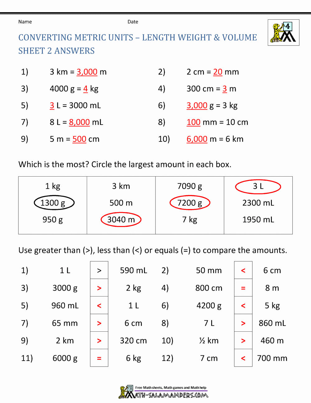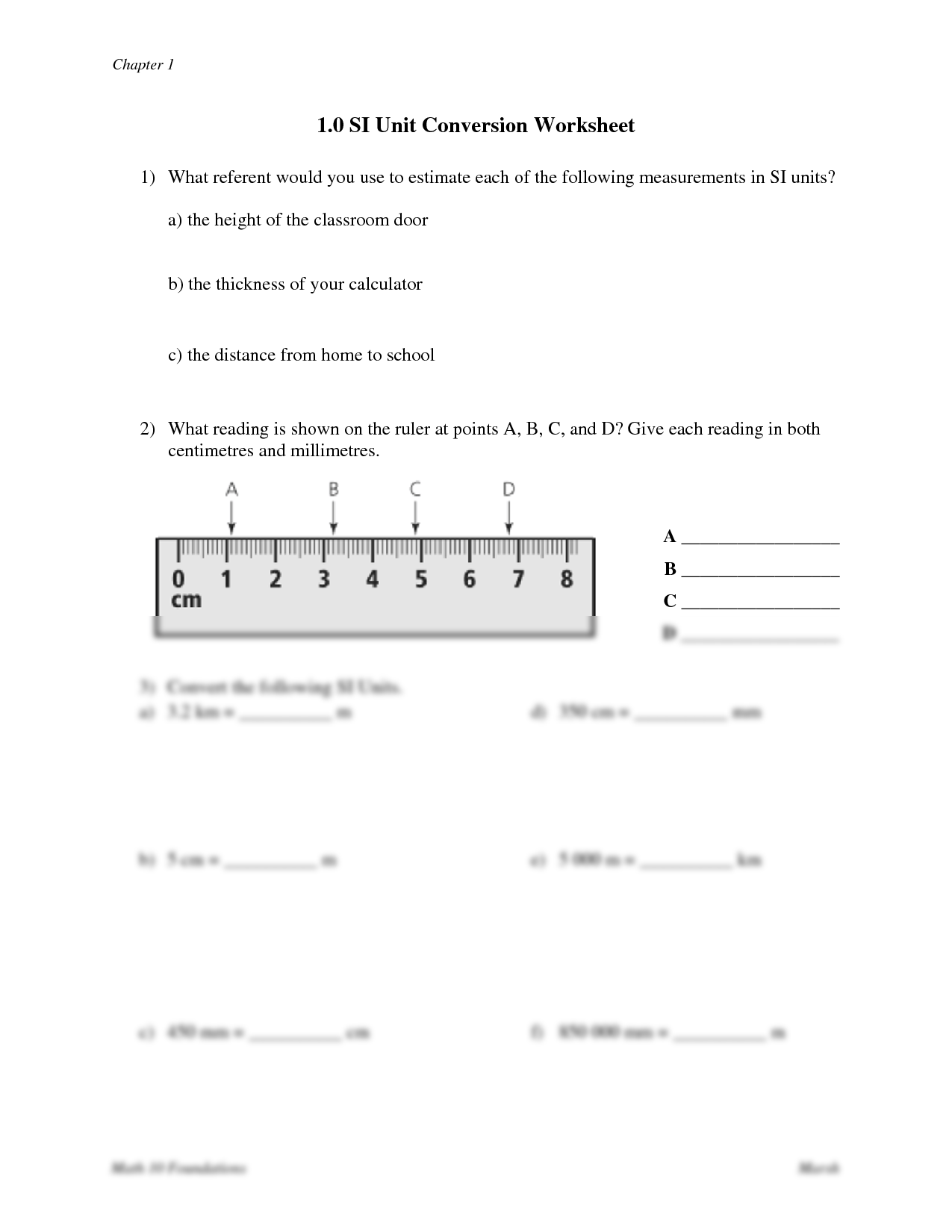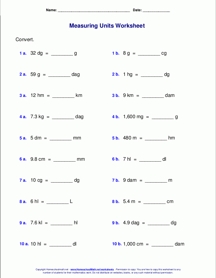 Download and Print unit conversion worksheets Listed below