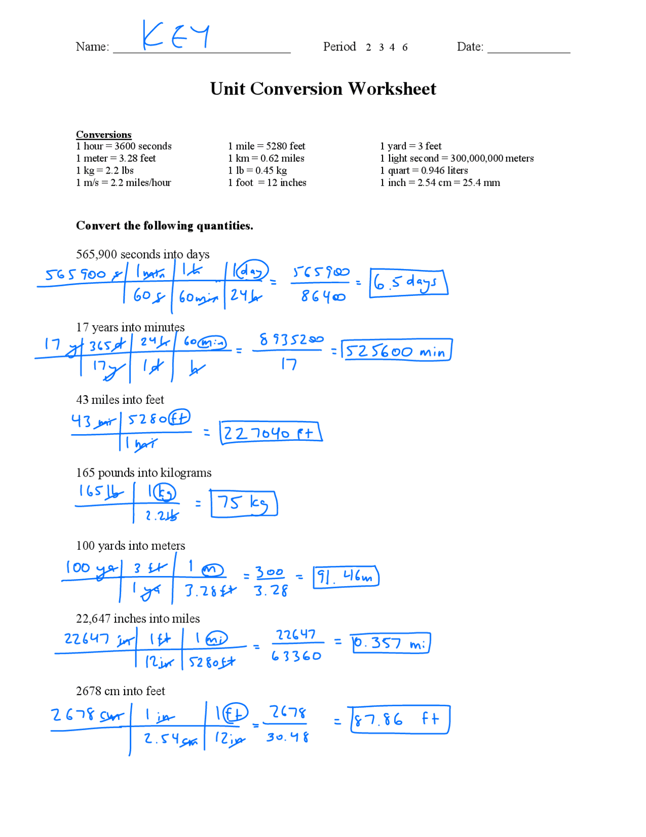 Unit Conversion Worksheets