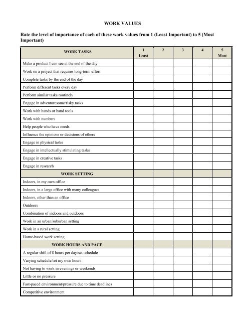 Work Values Inventory Worksheet By Rae Wilde Issuu