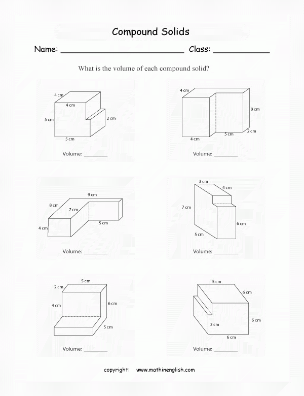 These worksheets typically include a mix of different types of composite figures, such as prisms, cylinders, cones, and spheres. Students are required to calculate the volume of each figure by breaking it down into simpler shapes and using the appropriate formulas. This helps students develop their problem-solving skills and gain confidence in their math abilities.