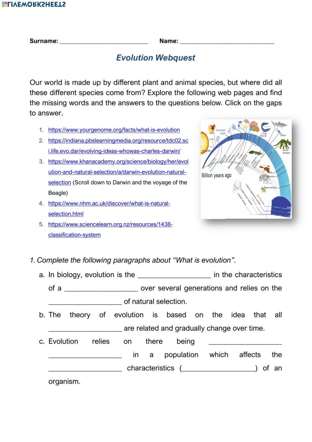 Evolution WebQuest Online Exercise For Live Worksheets Worksheets