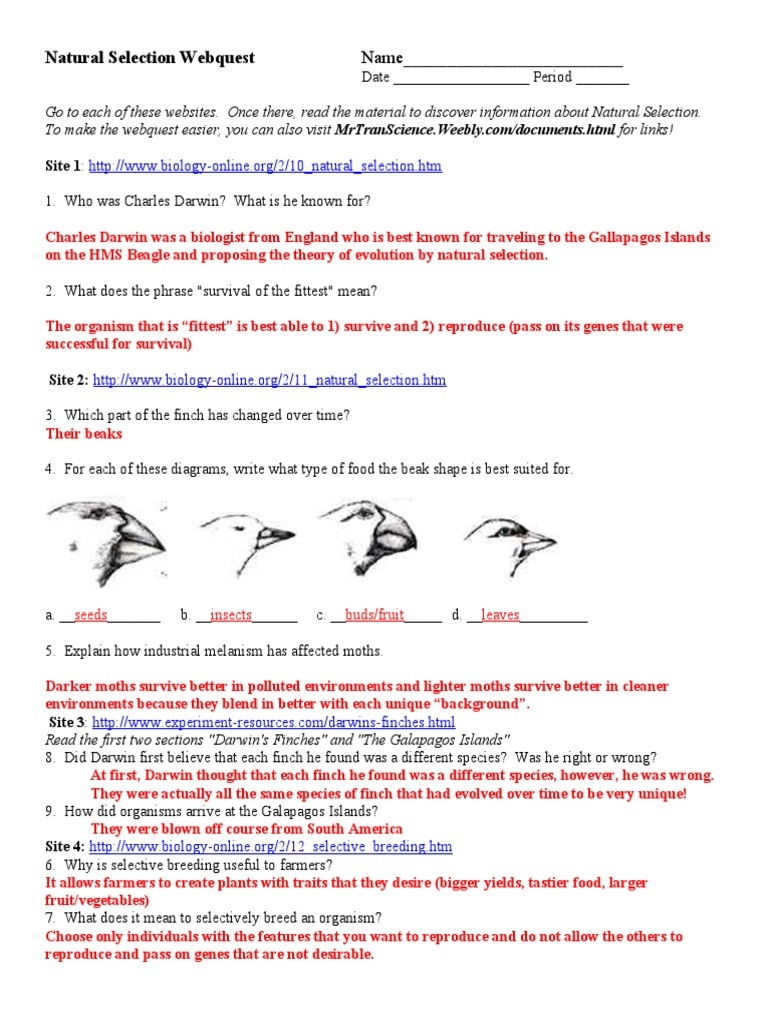Natural Selection Webquest Answers PDF Natural Selection
