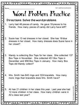 Word problems practice worksheets provide students with the opportunity to work on a variety of word problems in a structured format. These worksheets typically include a mix of addition, subtraction, multiplication, and division problems that require students to analyze the given information, identify the appropriate operation to use, and solve the problem accurately.