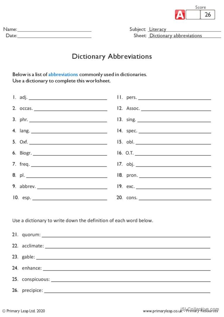 In the English language, abbreviations play a crucial role in saving time and space when writing or speaking. Understanding and using abbreviations correctly can help improve communication and efficiency. To help students practice identifying and using abbreviations, worksheets are a great resource.
