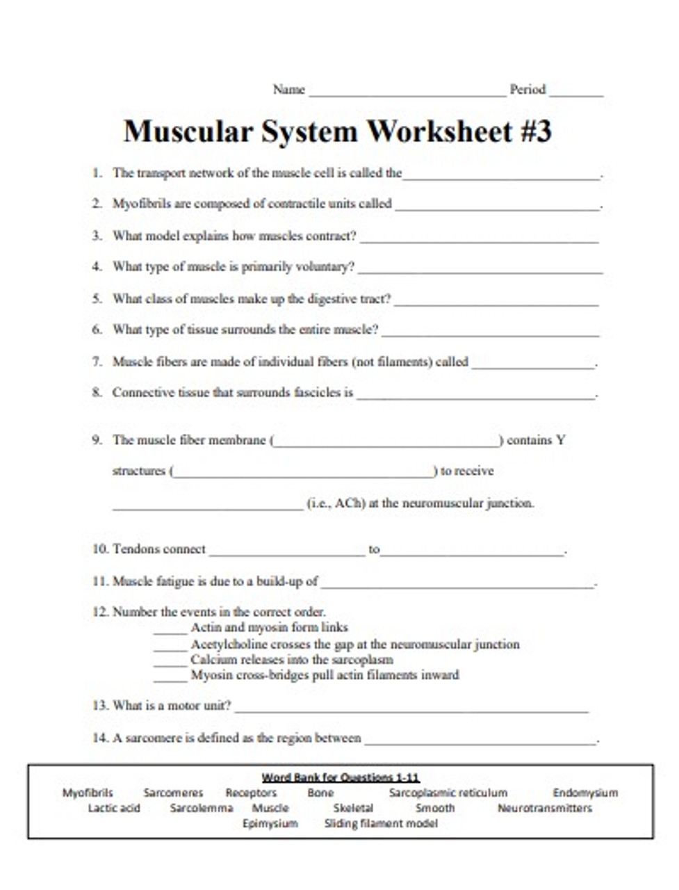 Worksheet On Muscular System