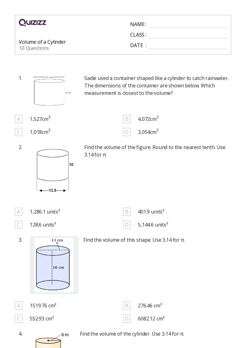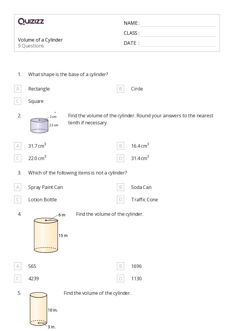 50 Volume Of A Cylinder Worksheets For 6th Grade On Quizizz