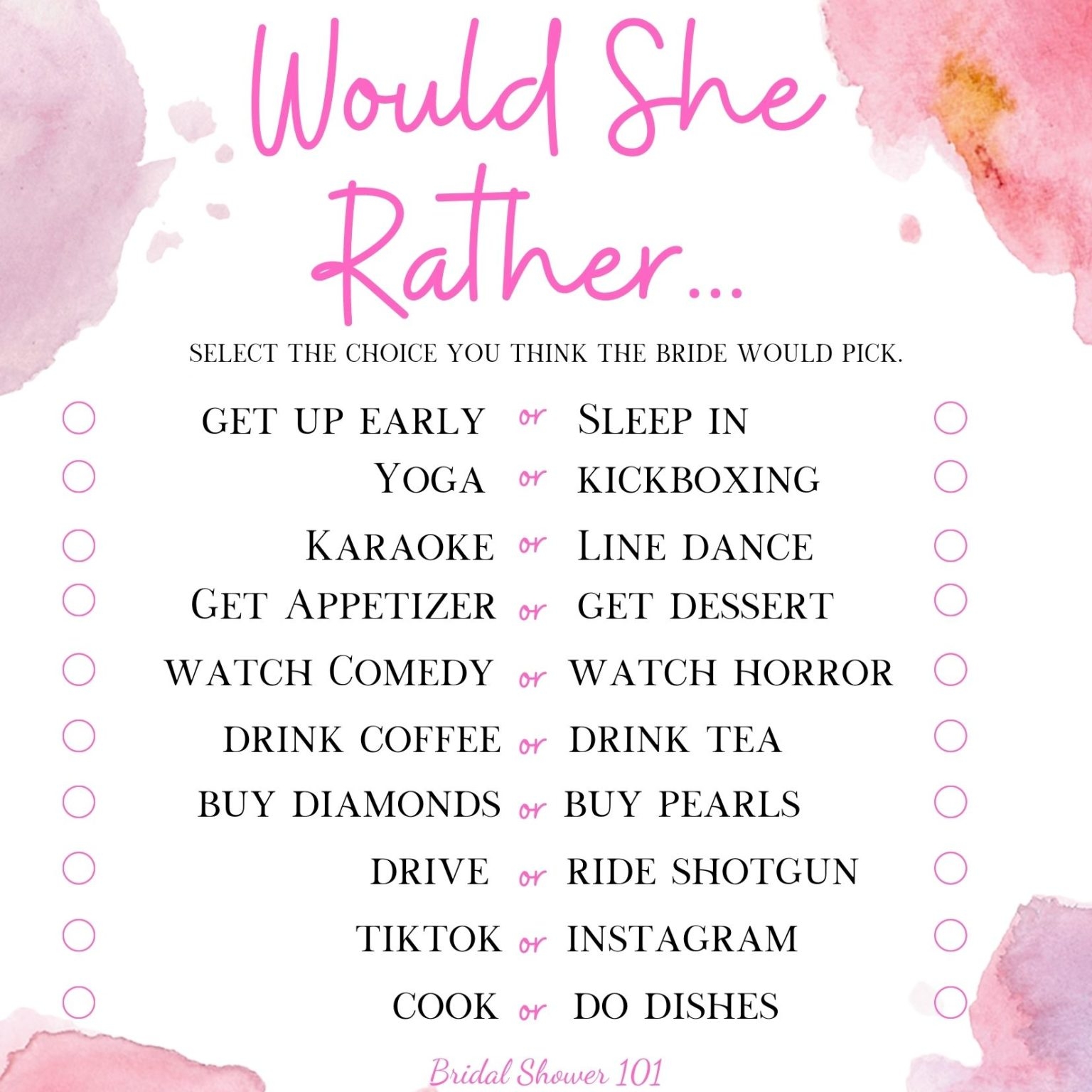 quot Would She Rather quot Bridal Shower Game Free Printable Party Ideas