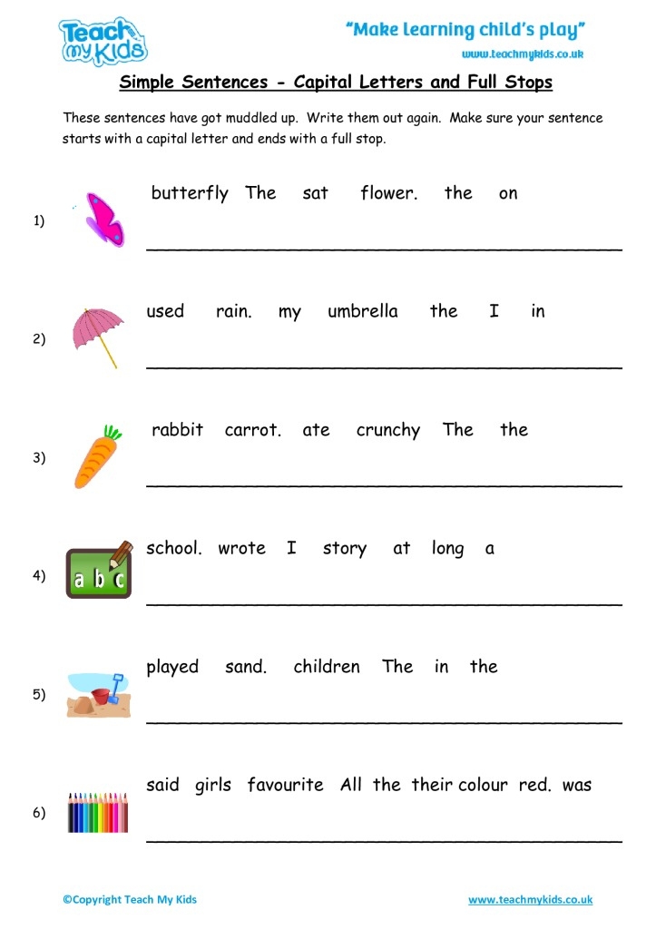 Writing Simple Sentences Worksheets Pdf